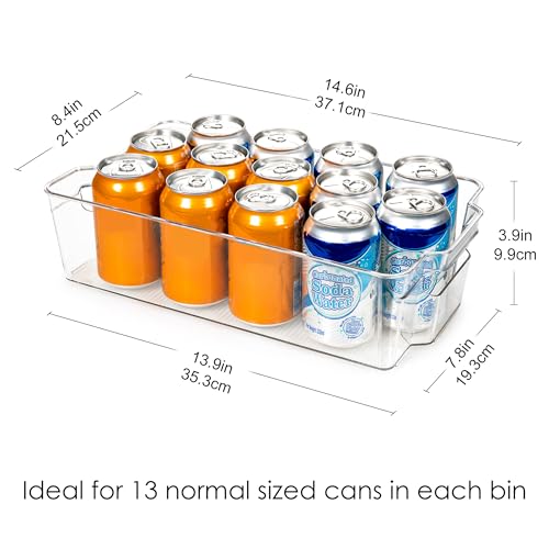 صناديق منظم الثلاجة من هوجو - 4 قطع الصناديق البلاستيكية الشفافة للثلاجة والفريزر وخزانة المطبخ وتنظيم المخزن ومنظم الخالية البيسفينول أ 14.5 انش طويلة كبيرة جدا شفافة