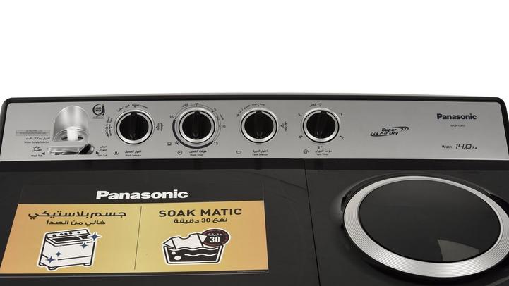 باناسونيك غسالة حوضين، غسيل 14 كيلو، عصر 8 كيلو، رمادي