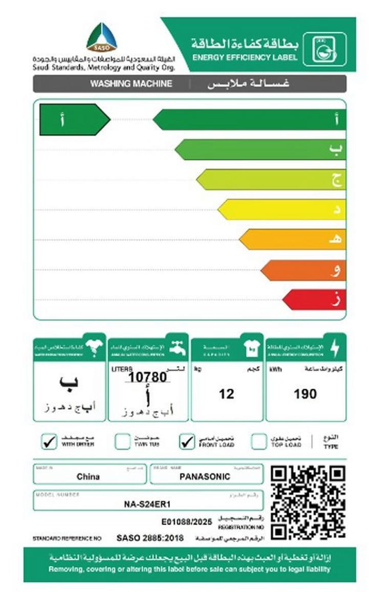 باناسونيك، غسالة تعبئة أمامية، غسيل/تجفيف، 12 كيلو/8 كيلو، انفرتر، فضي