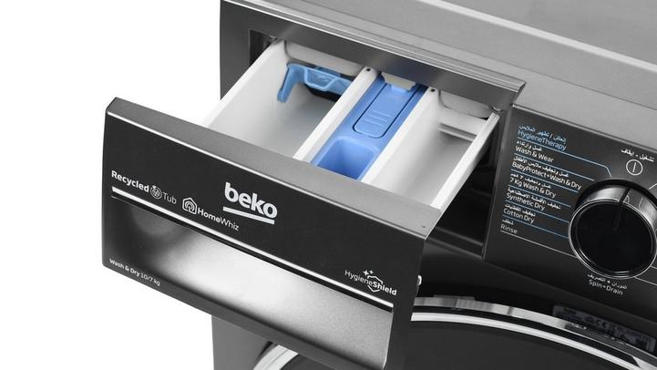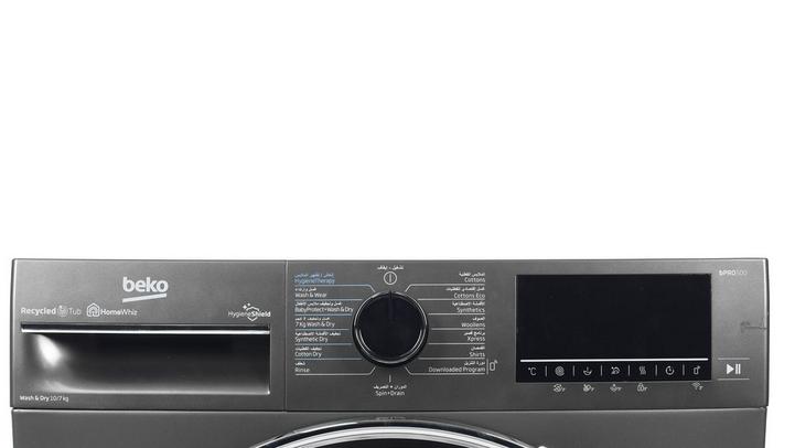 بيكو، غسالة تعبئة أمامية، غسيل/تجفيف، 10 كيلو/7 كيلو، رمادي داكن