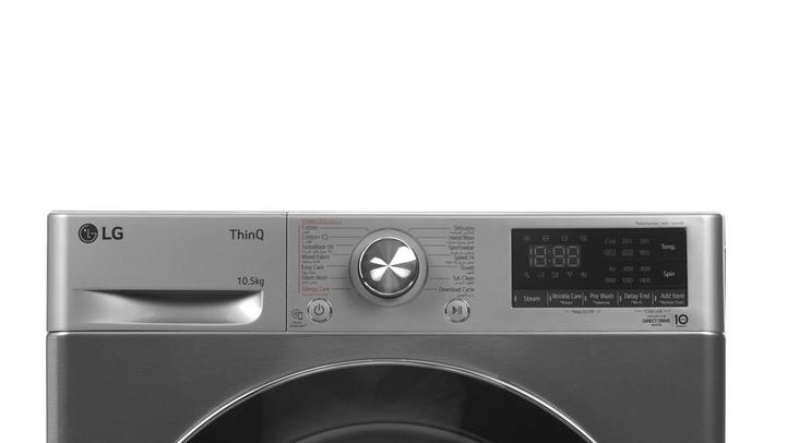 إل جي غسالة تعبئة أمامية، 10.5 كيلو، فضي