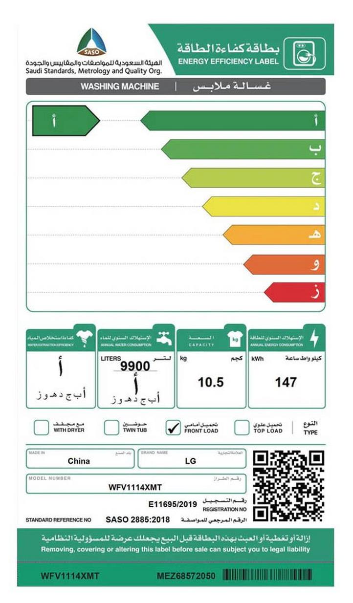 مواصفات المنتج عملية غسيل هادئة محرك عاكس سعة الغسالة 10.5 كجم الأمان أولا قفل الحماية للأطفال