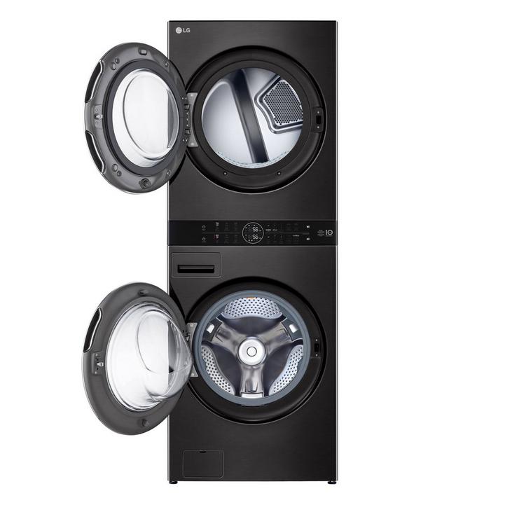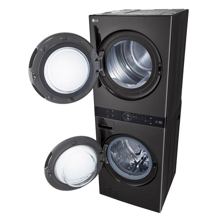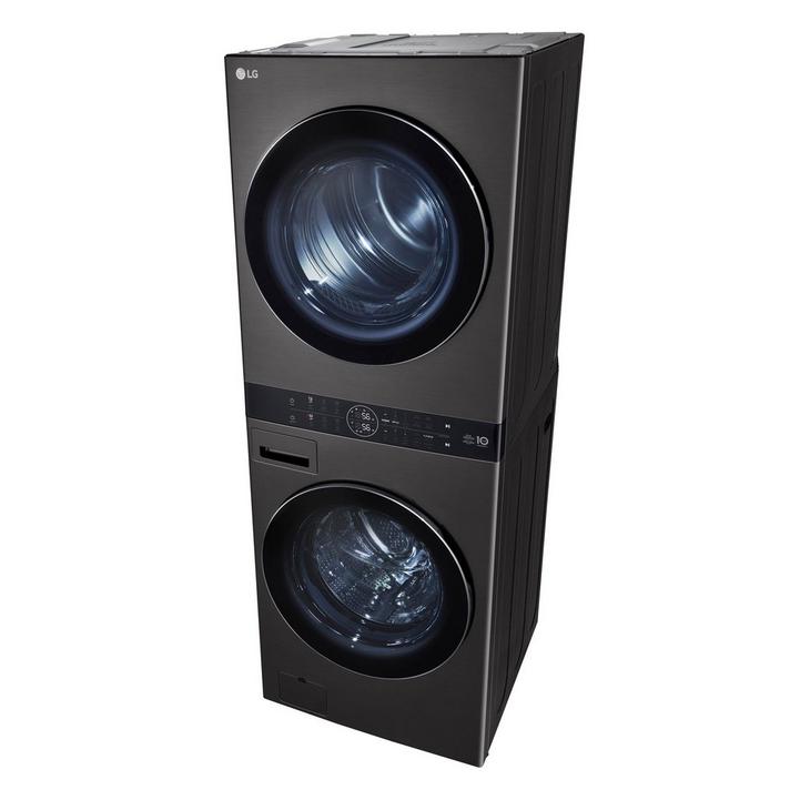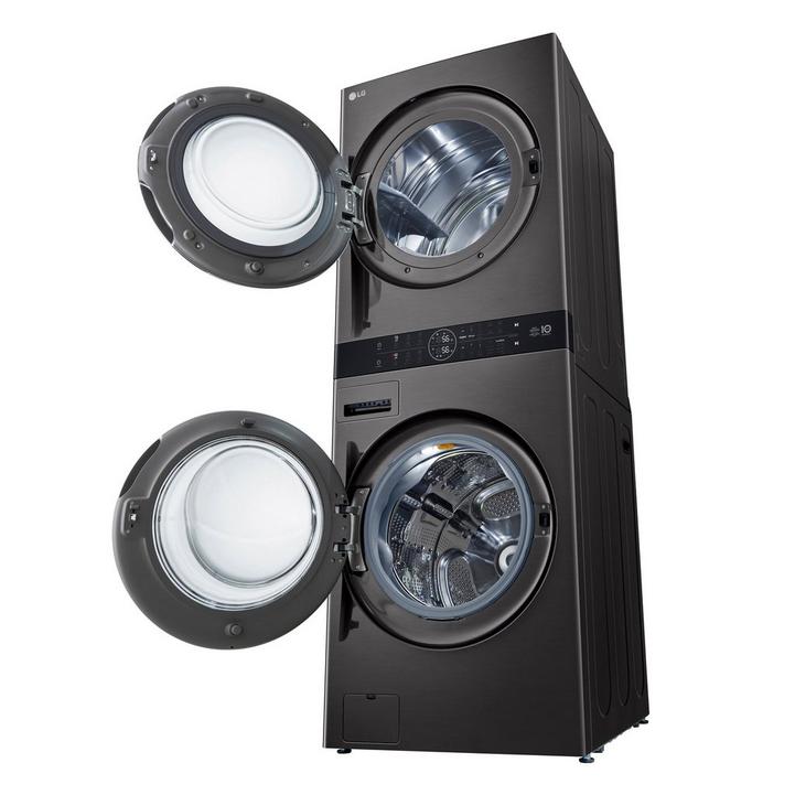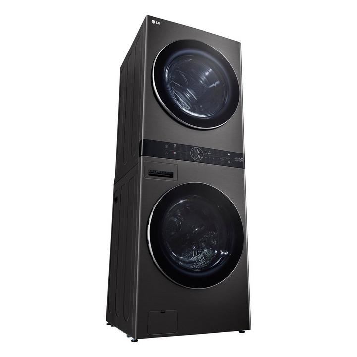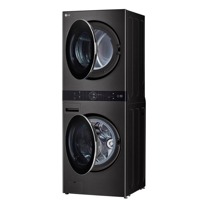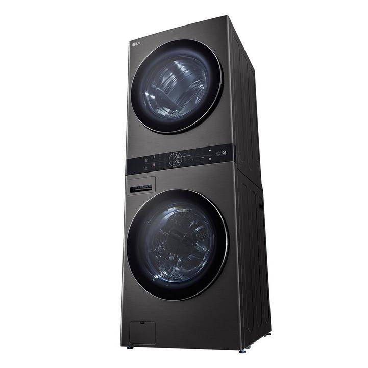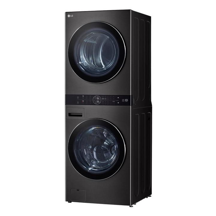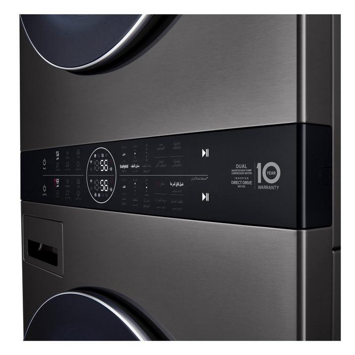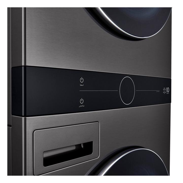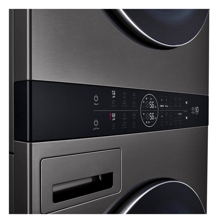 ال جي، غسالة 25 كجم، مجفف 20 كجم، غسالة ونشاف، تحكم مركزي، أسود ستيل
