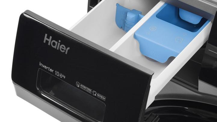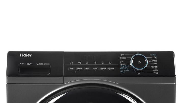 هاير، غساله تعبئه امامية، غسيل 10 كيلو، تنشيف 6 كيلو، 15 برنامج، رمادي غامق