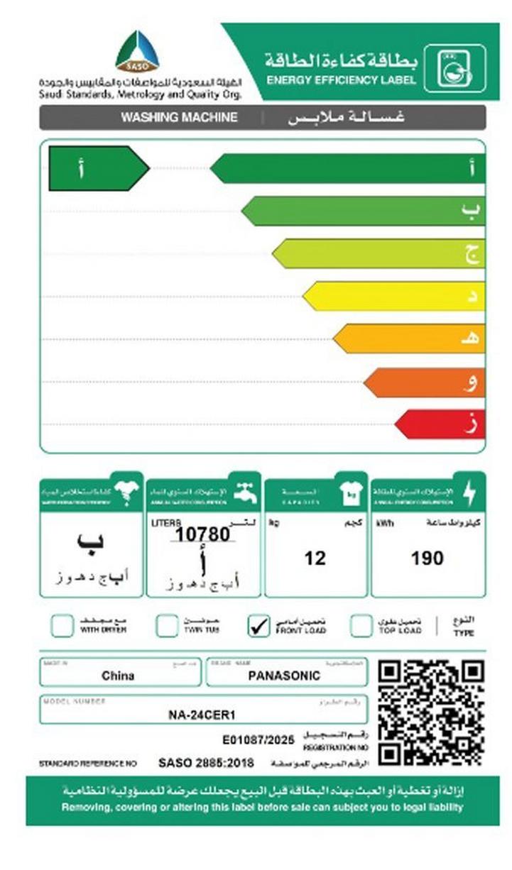 باناسونيك، غسالة تعبئة امامية، 12 كيلو، انفرتر، فضي