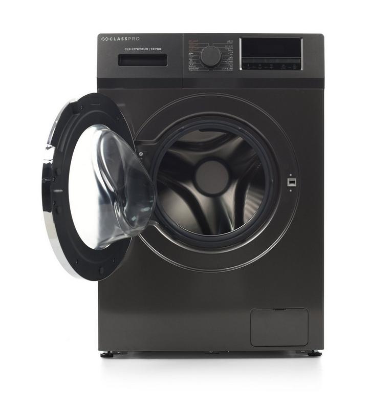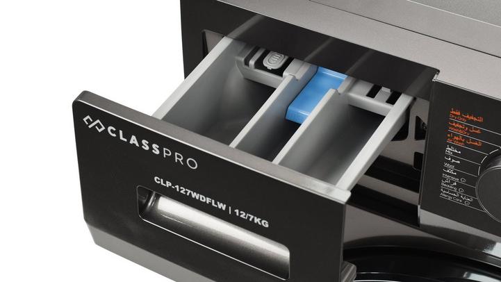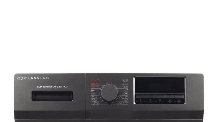 كلاس برو، غسالة تعبئة أمامية، غسيل/تجفيف، 12 كيلو/7 كيلو، رمادي