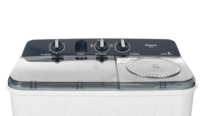 هايسينس، غسالة بحوضين، 9 كيلو، أبيض