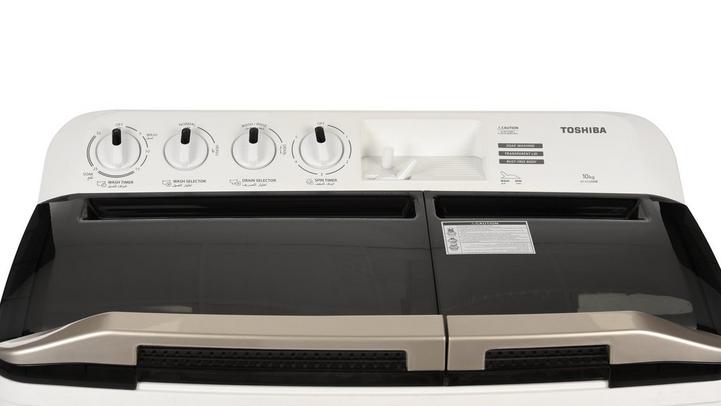 توشيبا غسالة حوضين، 10 كيلو، هيكل ضد الصدأ، أبيض / أسود