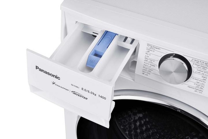 باناسونيك، غسالة تعبئة أمامية، غسيل 8 كيلو تجفيف 6 كيلو، انفرتر، أبيض