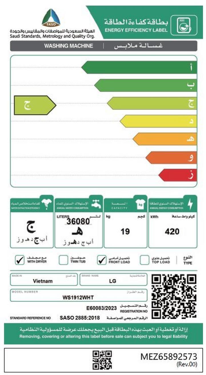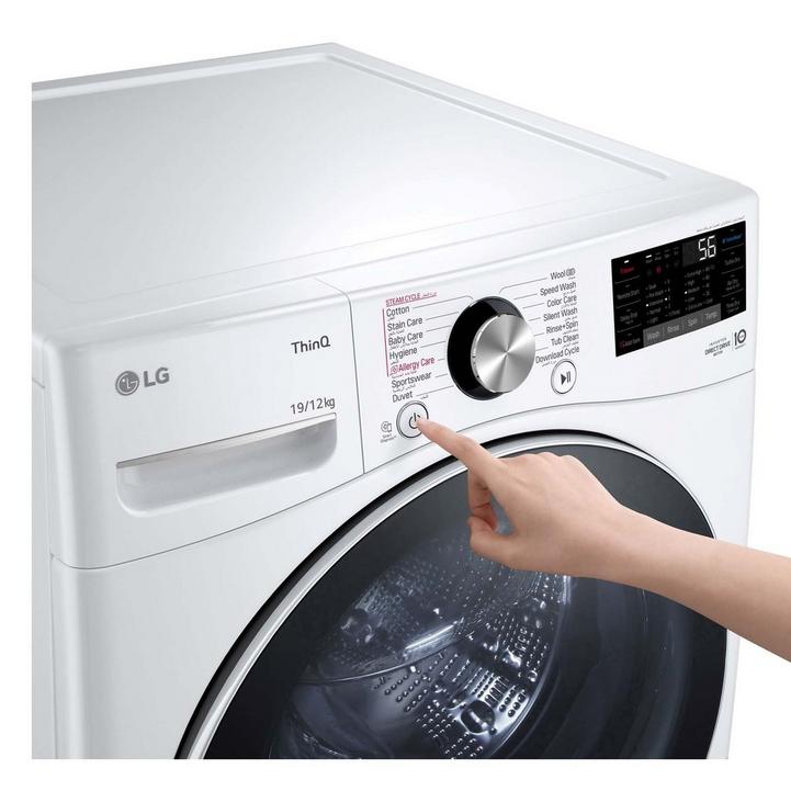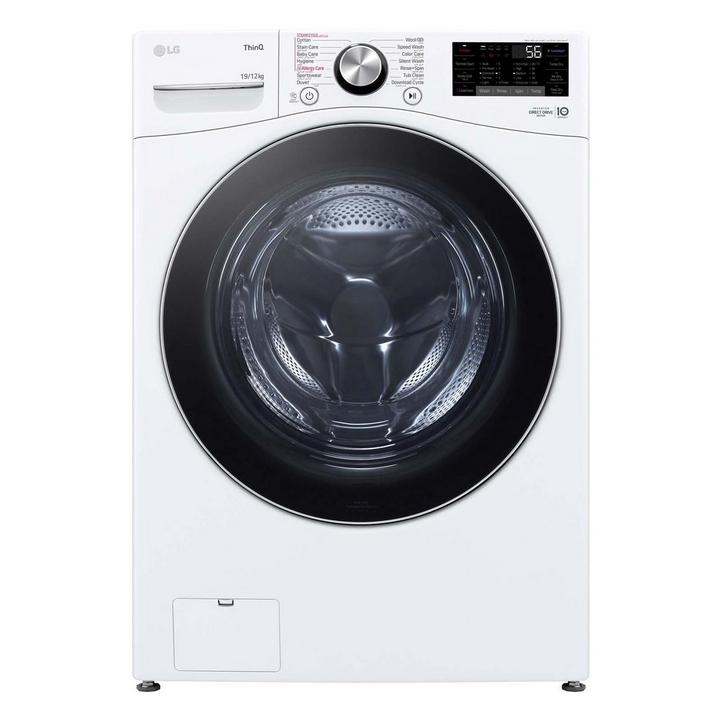 غسالة إل جي سعة 19 كجم مع مجفف سعة 12 كجم ، غسالة بتعبئة أمامية، أبيض