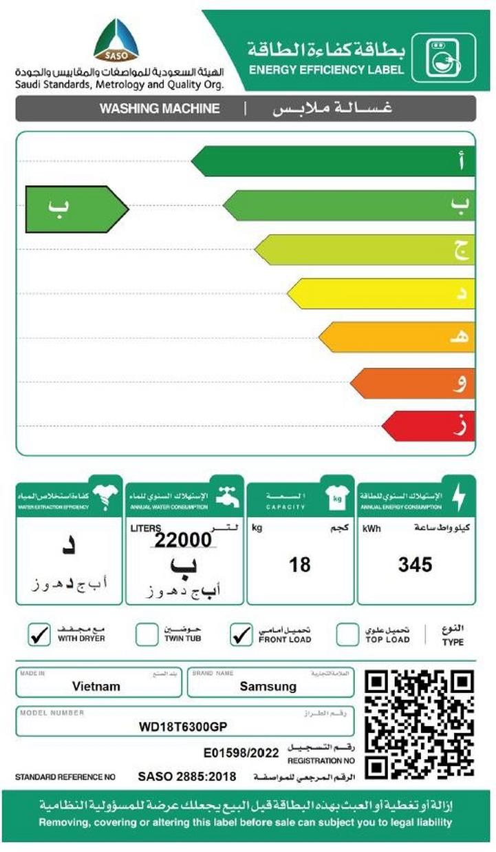 سامسونج غسالة تعبئة أمامية، غسيل 18 كيلو / تجفيف 11 كيلو، واي فاي، إنوكس