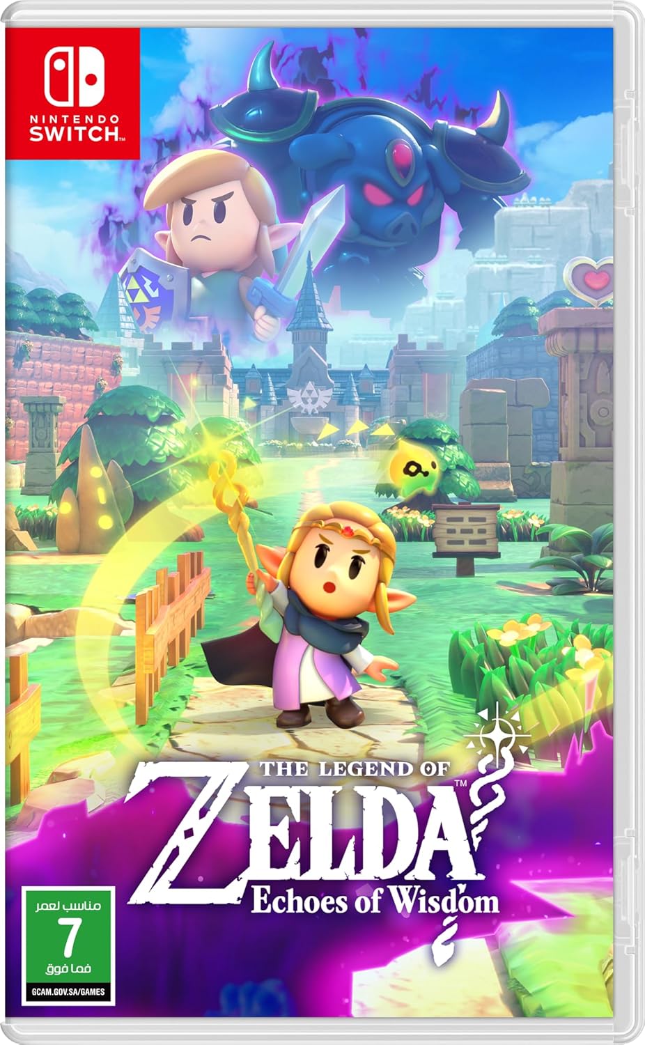 اصنع أصداء مثل مكعبات الماء للوصول إلى آفاق جديدة، أو جعل الجسور خارج الأسرة القديمة، أو رمي الحجارة على الأعدائ، أو ابحث عن مزيج إبداعي خاص بك من الأصداء للقيام بالأشياء بطريقتك. يمكنك حتى إنشاء أصداء الوحوش للقتال إلى جانبك في القتال!. أنقذ مملكة هايرول - هذه المرة بحكمة الأميرة زيلدا - في ذا ليجند اوف زيلدا: إيكوز اوف ويزدوم لجهاز نينتندو سويتش.. تعاون مع الجنية الغامضة، تري، واستخدم قوة قضيب ثلاثي لتعلم كيفية إنشاء أصداء وتقليد الأشياء الموجودة في البيئة. يمكنك بعد ذلك إعادة إنشاء تلك الأصداء كلما أردت حل الألغاز وهزيمة الأعداء.. يتم سرقة شعب هايرول بسبب الانقسامات الغريبة التي ظهرت، ومع وجود سيوف معين بين المفقودين، الأمر متروك للأميرة زيلدا لإنقاذ مملكتها..