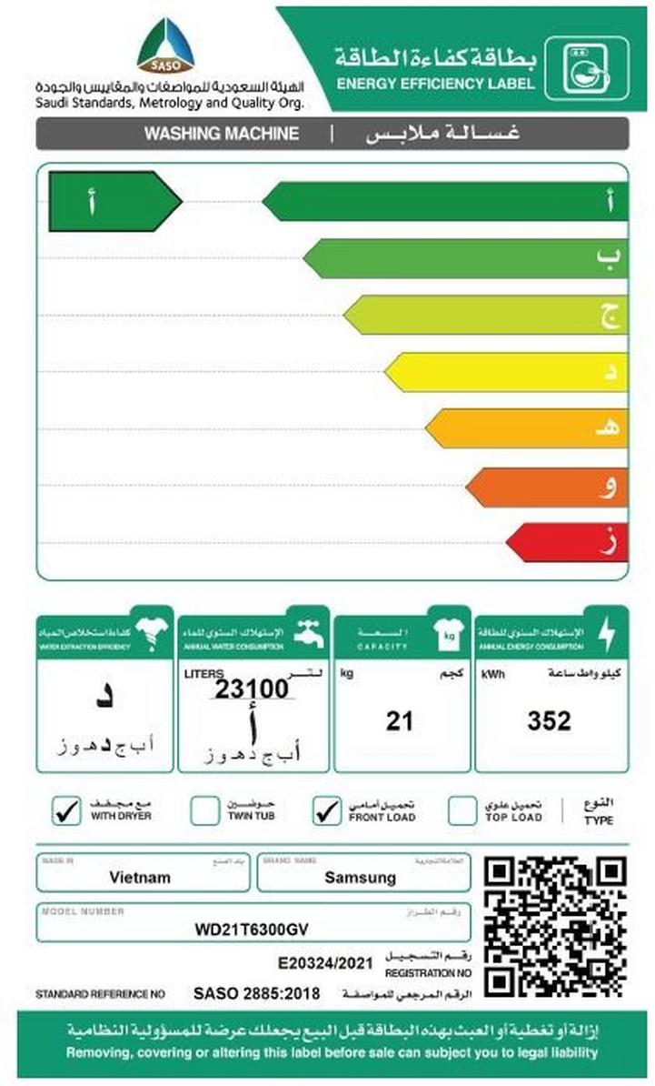 سامسونج غسالة تعبئة أمامية، غسيل 21 كليو / تجفيف 12 كيلو، أسود