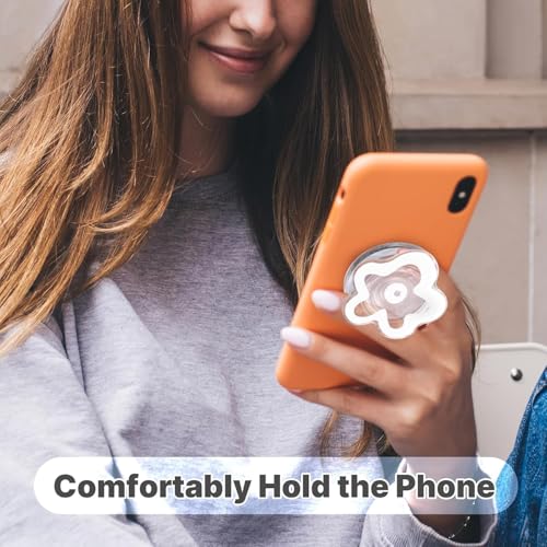 مقبض موبايل بتصميم لطيف شفاف على شكل زهرة الاقحوان من بوكيلا، متوافق مع ماج سيف، حامل قابل للطي متعدد الوظائف للهواتف الذكية والتابلت والجوال (اسود)