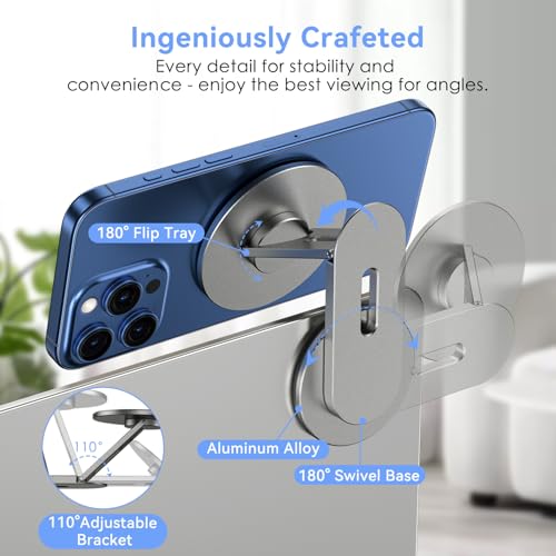 كلاود فالي حامل جوال لاب توب مغناطيسي، حامل دوار 360 درجة متوافق مع ايفون ماج سيف وجميع الموبايلات وماك بوك وشاشة الكمبيوتر، حامل شاشة لتيسلا، ملحق محمول، رمادي