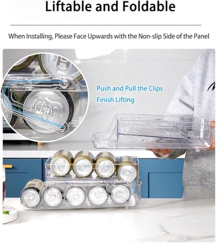 【سعة كبيرة】تصميم واسع لمنظم علب الصودا ذات السعة الكبيرة يمكن أن يتوافق مع أحجام متعددة من العلب. على سبيل المثال، علب صغيرة 7.5 اونصة/200 مل، علب رفيعة 11 اونصة/330 مل، علب قصيرة 12 اونصة/355 مل، علب قصيرة 11 اونصة/330 مل 【تصميم قابل للطي يوفر مساحة أكبر】منظم علب الصودا للثلاجة قابل للطي. عند استخدامها، يمكنك فردها، وبالتالي تخزين المزيد من العلب. عندما لا تستخدمها أو عندما يكون هناك عدد قليل من علب الصودا، يمكنك طيها حتى تتمكن من توفير مساحة تخزين كبيرة 【تصميم دوار تلقائي】منظم صودا مزدوج الطبقات بتصميم منحدر على كل من المستويين العلوي والسفلي، وستعمل العلب الموضوعة من الطبقة العلوية تلقائيًا إلى مقدمة الطبقة السفلية تحت الجاذبية. عند إزالة العلب من الطبقة السفلية، ستملأ العلب الداخلية الفجوة تلقائيًا مرة أخرى 【مادة عالية الجودة وسهلة التنظيف】منظم المشروبات الخاص بنا مصنوع من مادة بي اي تي الآمنة غذائيًا، خالٍ من البيسفينول ايه، ويمكن أن يتلامس مباشرة مع الطعام. تصميم سميك يجعل السمك يمكن أن يصل إلى 3.43 ملم، وأكثر قوة ومتانة. السطح الأملس يجعل من السهل جدًا تنظيفه، اشطفيه بالماء لشطفه وتنظيفه 【رؤية واضحة】شاهد بسرعة ما يتم تخزينه داخل منظم تخزين علب الصودا، مما يوفر الوقت ومتاعب البحث في الثلاجة أو الفريزر أو المخزن الفوضوي