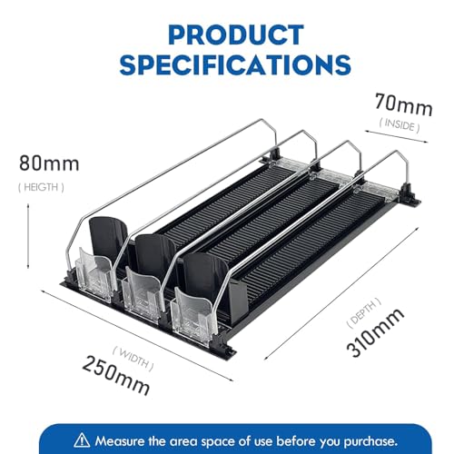 منظم مشروبات للثلاجة من 3 قطع علب الصودا ذاتي الدفع مع انزلاق دفع قابل للتعديل وعرض موزع اوتوماتيكي للمتجر والمنزل أسود، ستانلس ستيل