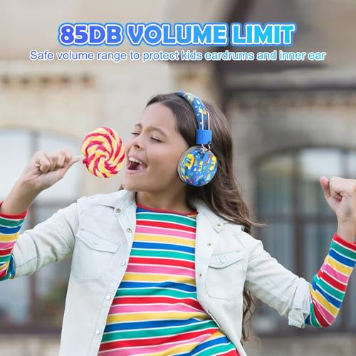 سماعات راس لاسلكية للاطفال بتصميم ديناصور ازرق من ازوني بلوتوث مع ميكروفون سماعة فوق الاذن بعمر سنتين فما متوافقة ايباد / فاير تابلت