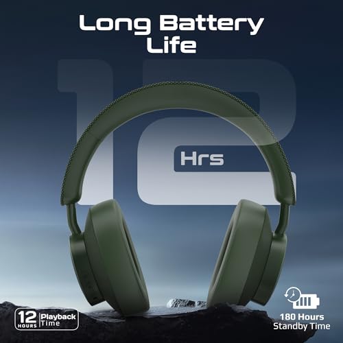 بروميت سماعات ستيريو لاسلكية بصوت عالي وقت تشغيل 12 ساعة مع بطارية 400mAh مسافة 10 متر وسائد اذن مريحة حزام راس قابل للتعديل وتصميم للطي أخضر