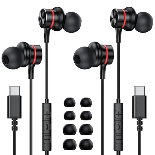 موسواغ سماعات اذن سلكية بمنفذ USB نوع C مع ميكروفون لموبايل ابل ايفون 15 برو ماكس، جالكسي S23 S24 FE الترا، جوجل بيكسل 9 8 عبوة من قطعتين