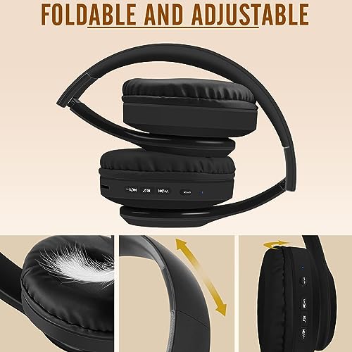 سماعة راس لاسلكية من سكاي تاتش فوق الاذن عازلة للضوضاء مع بلوتوث 5.0 وشحن سريع ووقت استعداد طويل وضوح عالي صوت نقي لاجهزة ايفون وايباد والجوال ومشغلات MP3 وما الى ذلك لون اسود