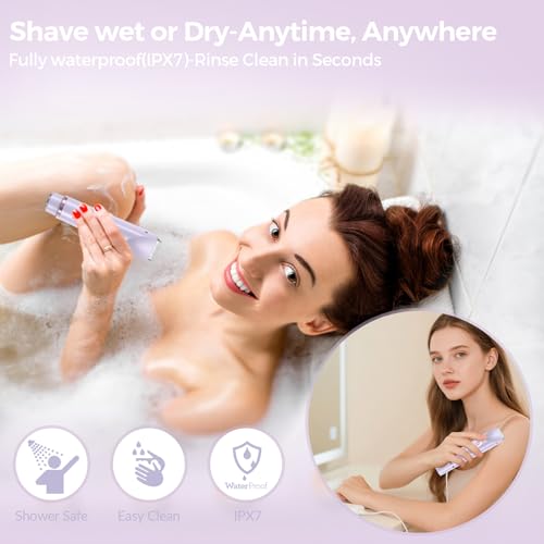 ماكينة حلاقة نسائية 2 في 1 من بوكيلا، ماكينة حلاقة حميمة للنساء، ماكينة حلاقة حميمة، ماكينة تشذيب الجسم للوجه والمحور والساق والبيكيني، للاستخدام الجاف والرطب، مقاومة للماء بدرجة IPX7 (ارجواني)