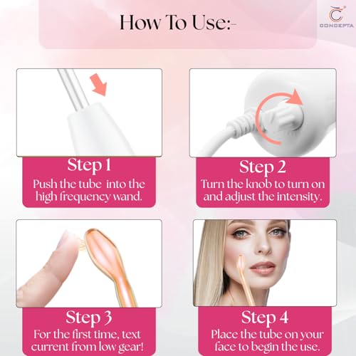 كونسيبتا جهاز محمول عالي التردد لعلاج حب الشباب وشد البشرة وتقليل التجاعيد والعيون المنتفخة والهالات السوداء وتبديد النمش 4 في 1، جهاز محمول باليد عالي التردد للوجه والشعر