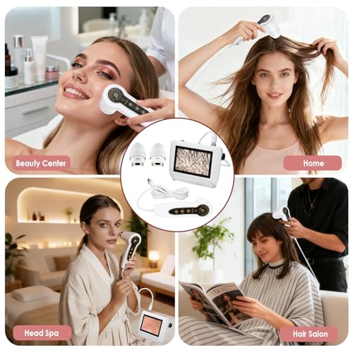 جهاز تحليل شعر البشرة، كاشف فروة راس رقمي بشاشة LCD 5 انش مع عدسة 50X/200X، ماسح بصيلات الشعر قابل لاعادة الشحن لتحليل البشرة، للاستخدام في المنزل وصالونات التجميل، اداة منظار الجلد المحمولة