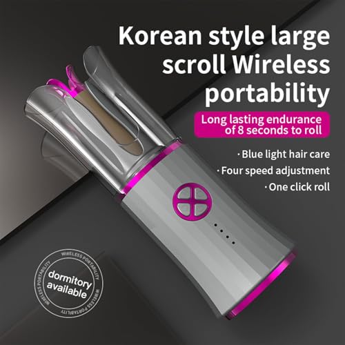 Quick heating and one-click automatic curling: The automatic curling iron can achieve different levels of curls within 60 seconds with just one press of a button, allowing you to enjoy a salon-quality styling experience right at home. Anti-perming and anti-tangling curling iron: The heating tube of this rotating curling iron can safely hold the hair without tangling or burning it.The scald guard eliminates the risk of burns and is easy to clean at any time. USB charging wireless portable curling iron: The wireless curling iron enables you to create a perfect hairstyle anytime and anywhere, even when traveling.The regular usb charging cable can be adapted to the use of curling irons, which is very convenient. Anytime shaping: 4 temperatures to choose from freely -140°-160°-180°-200°, 30-second rapid heating, equipped with a storage bag - 360° rotating line to reduce shaping difficulty - Automatic shutdown after 20 minutes, ensuring safe use. Convenient to carry: This portable curling iron measures 190*70*55mm, which is just right to fit into your handbag. It doesn't take up much space when placed on the makeup desk either.