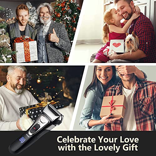 LinJie Men's Electric Shaver, 3 Blade Foil Shaver with Pop-Up Trimmer, Cordless Rechargeable, Waterproof LED Display, Wet/Dry Use, Black