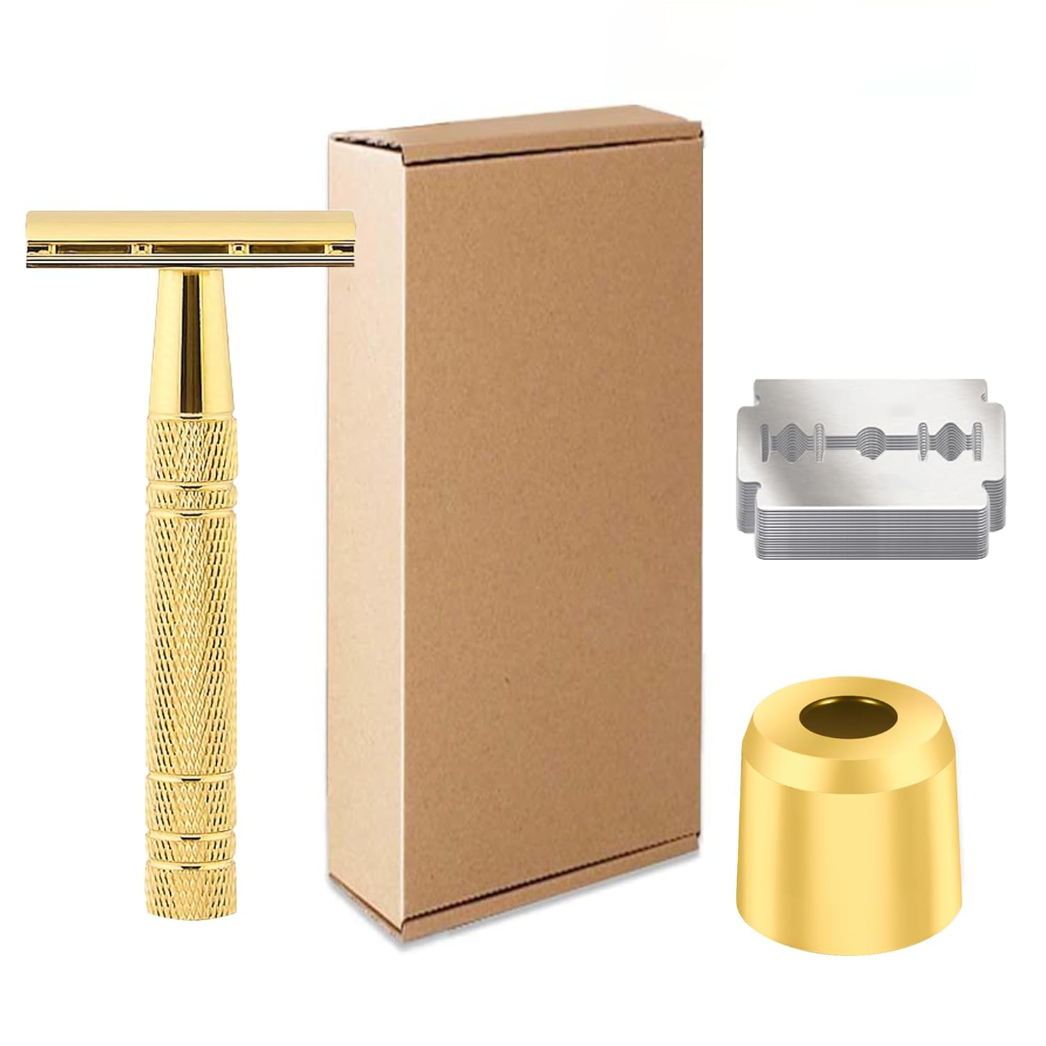 مستلزمات حلاقة للرجال مع حامل سداسي و20 شفرة، طقم حلاقة عربي تقليدي للعناية بالبشرة الحساسة بشفرة من الفولاذ المقاوم للصدأ مضادة للحساسية بلون ذهبي (بلمسة نهائية ذهبية عتيقة)