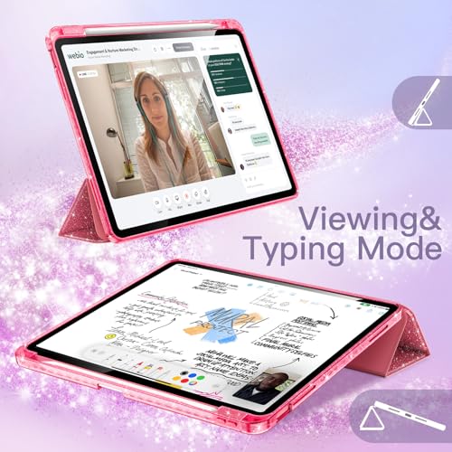 جيتك حافظة لامعة لجهاز ايباد (A16) الجيل 11/10 (2025/2022) مع حامل قلم، غطاء نحيف ولامع لطيف للاطفال والبنات، غلاف خلفي شفاف لامع (بينك)