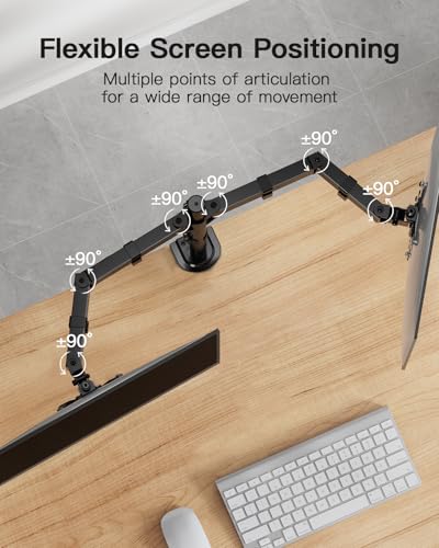 حامل مزدوج سعة شاشتين بمقاس حتى 30 بوصة، حامل شاشة شديد التحمل بسعة وزن حتى 10 كجم، ذراع شاشة مزدوج بارتفاع قابل للتعديل وتصميم قابل للإمالة والدوران مزود بفتحة فيسا 75 ملم أو 100 ملم من هوانو