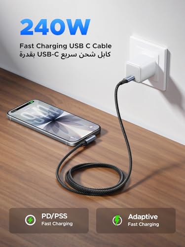 كابل من يو جرين بطول 2 متر نوع USB-C متوافق مع آيفون 17-15 وماك بوك برو وآيباد برو وسامسونج S25 وS24 وألترا وهواوي ولينوفو وديل