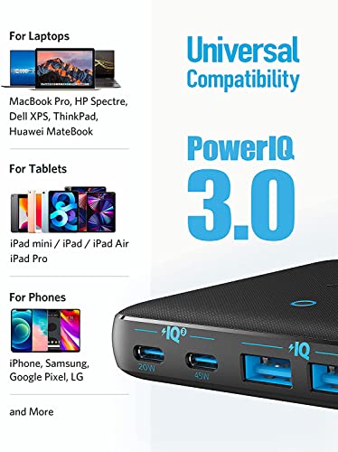 شاحن من أنكر بمنفذ USB متوافق مع آيفون بـ 4 منافذ بقوة 65.0 واط مع شحن سريع وتقنية GaN وباور آي كيو 3.0