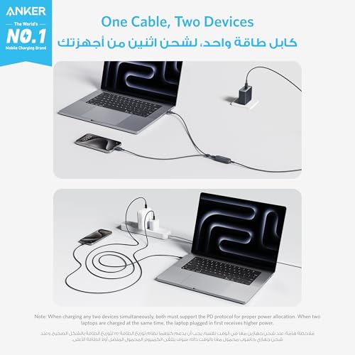 انكر كيبل USB C الى USB C بطول 4 قدم 2 انش 140 واط كحد اقصى، شحن سريع لسلسلة ايفون 17/16/15، سامسونج S25/S24/S23، ماك بوك اير/برو، هواوي، هونر والمزيد (USB 2.0، مضفر)