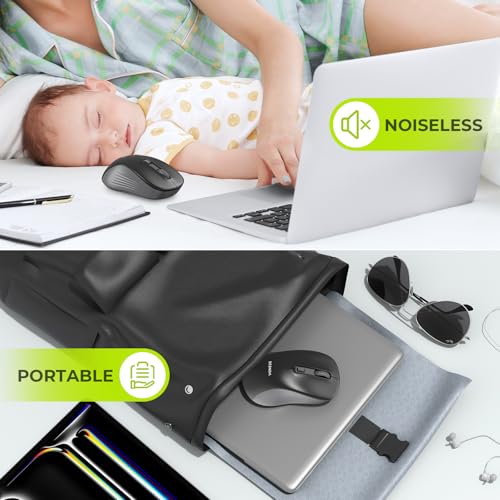 سيندا ماوس لاسلكي، ماوس بلوتوث للاب توب - وضع مزدوج (بلوتوث + USB 2.4 جيجا) ماوس كمبيوتر متوافق مع ماك بوك واجهزة الكمبيوتر التي تعمل بنظام ويندوز واللاب توب - اسود