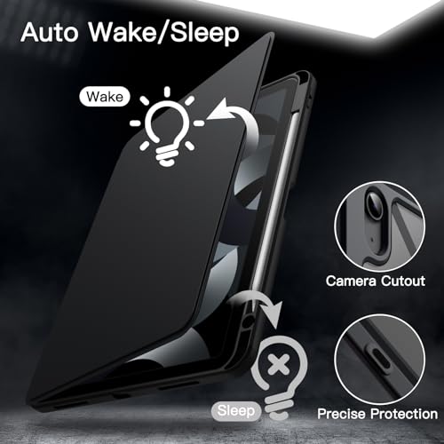 متوافق مع آيباد إير 11 بوصة M3/M2 (2025/2024) وآيباد إير 5/4 (2022/2020 بحجم 10.9 بوصة) مع فتحات دقيقة تصميم هجين بإطار TPU ولوحة خلفية PC وغطاء أمامي من الجلد PU لحماية شاملة للجهاز تصميم عصري أسود بنمط صلب ولوحة خلفية شفافة تُظهر المظهر الأصلي لجهازك حامل دوار 360 درجة بزوايا مشاهدة متعددة وحامل قلم مدمج ووظيفة النوم/الاستيقاظ التلقائي تصميم أنيق بارتفاع 17.19 ملم وبناء خفيف الوزن 329.5 جرام للاستخدام اليومي المحمول