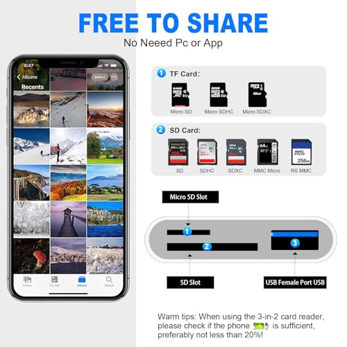 قارئ بطاقات مايكرو SD USB C 3 في 1 من لويديا، محول بطاقة SD لايفون، قارئ بطاقة كاميرا لايتنينج، محول بطاقة ذاكرة SD/TF، التوصيل والتشغيل، قارئ بطاقة SD لايفون واللابتوب والتابلت وهواوي وشاومي