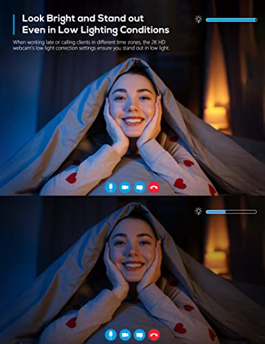 كاميرا ويب 2K بدون ميكروفون مع غطاء للخصوصية بمنفذ USB للكمبيوتر واللابتوب بخاصية التوصيل والتشغيل، لا تصدر صوتًا، زاوية واسعة 78 درجة للبث والمؤتمرات ومناسبة للسكايب والزووم واليوتيوب، أسود