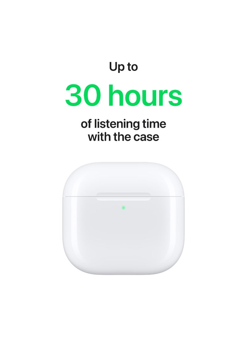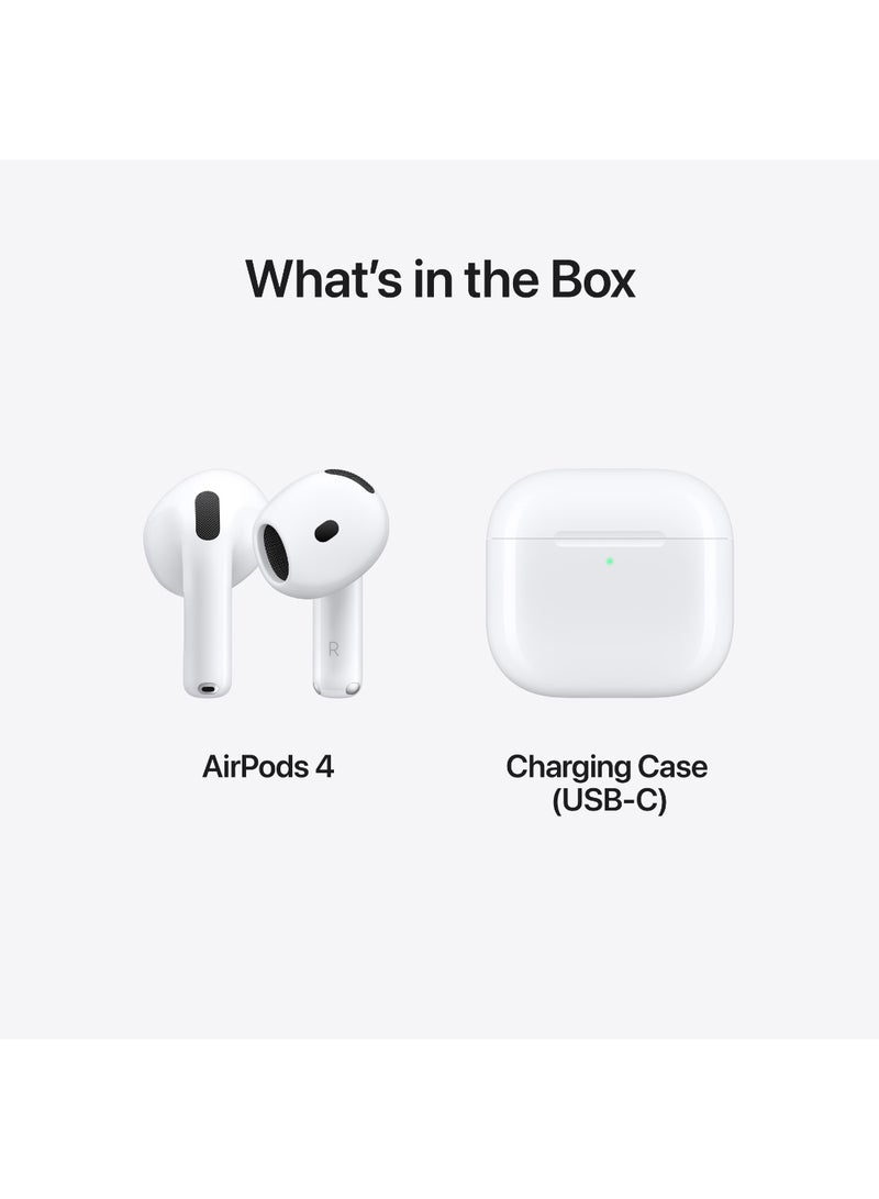 AirPods 4 Wireless Earbuds, Bluetooth Headphones, Personalized Spatial Audio, Sweat and Water Resistant, USB-C Charging Case, H2 Chip, Up to 30 Hours of Battery Life, Effortless Setup For IPhone White
