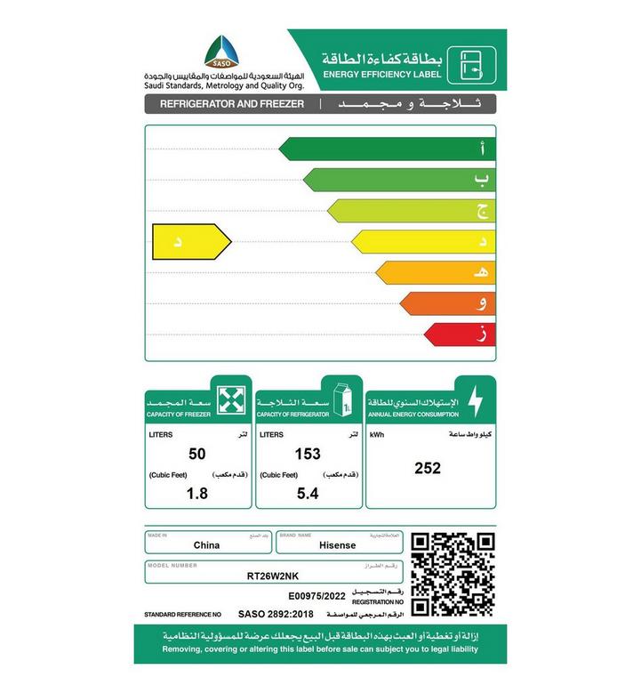 Hisense Refrigerator 5.4Cu.ft, Freezer 1.8Cu.ft, No-Frost, Silver