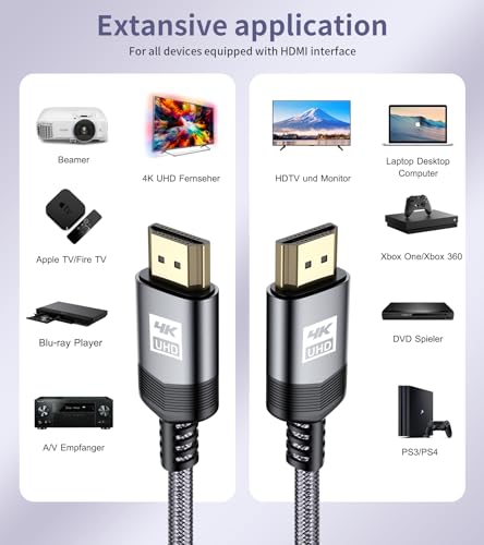 ✅[4K Ultra High Definition HDMI Cable]: sweguard Ugraded 4K HDMI 2.0 Cable supports all HDMI resolutions up to 4K (3840x2160p at 60Hz), enables unlimited video in 4K(UHD), 1440p(QHD) and 1080p(HD), including 3D and multiple view video. Provides you the best visual experience of ultra high definition. This 4K HDMI Cable is perfect to meet both your UHD audio and video needs, the perfect companion for the digital home theater, gaming center, TV channels and meeting conference rooms. ⚡[High Speed 18Gbps HDMI 2.0 Cable]: sweguard 4K High Speed HDMI Cable meets the latest standard HDMI 2.0 Version, which has been tested and certified to transmit the data at the speed up to 18Gbps of bandwidth and can be compatible. Designed perfectly for all devices with HDMI 2.0 standard as well as being backwards compatible with previous HDMI 1.4, 1.3 & 1.2. Plug and play without preinstalling drivers. ✨[Superior Qulified HDMI Cable Universal Compatibility]: sweguard constantly improve the craft of the HDMI cable, like we adopt adopt a unique SR joint design at both ends to effectively prevent joint cracking. HDMI Cable constructed using high-quality material for best contact connection between HDMI equipment, DVD/Blu-ray players, Fire TV, PS5/PS4/PS3, Xbox One/360, Sky q, Laptop, PC, Soundbar, or other HDMI-enabled devices to your 4K/HD TV, Monitors, Displayers or Projectors. ⚡[Innovative Designed & Advanced Technology HDMI Cable]: This flexible and tangle-free HDMI cable has a nylon braided jacket, easy to carry and package, which is ideal for tight environments. Top chips technology, gold-plated connector and durable PVC outer layer provides utmost protection against external signal interference, guarantee fast transfer of high-definition digital audio and video signals. Every function is tested to ensure you get the best audio and video experience. ⭐[Premium Customer Service Support]: sweguard is a professional seller devoted in producing superior 4K HDMI Cable. Choose the 4K HDMI Cable from sweguard, enjoy unconditional Lifetime Warranty and 24/7 Customer Service. Please feel free to contact with us once you have any questions. Our HDMI cable Customer Service Team will reach to you within 24 hours and try our best to solve the problems. RISK-FREE shopping by clicking the yellow "Add to Cart" button.