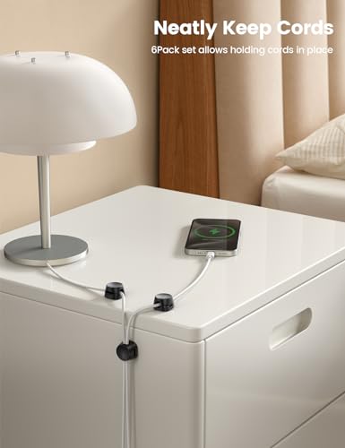 لاميكال منظم اسلاك [قفل 1 ثانية] مشابك حامل كابلات زنبركية - 6 قطع من مشابك ادارة الكابلات المكتبية، سلك شاحن الهاتف [سلس قابل للتعديل]، حافظة تنظيم الاسلاك اللاصقة لمنضدة السرير والحائط والسيارة والمكتب