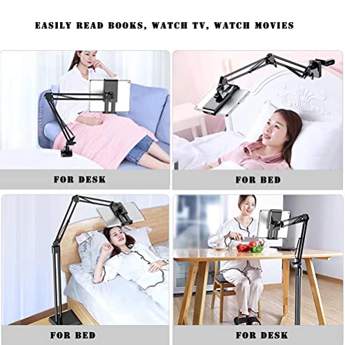 حامل تابلت 2 في 1 قابل للتعديل من دولوست موبايل للسرير والمكتب ارضي لجهاز ايباد 4.6 11.9 انش ايفون سامسونج جالكسي اسود ستيل كربوني معدني