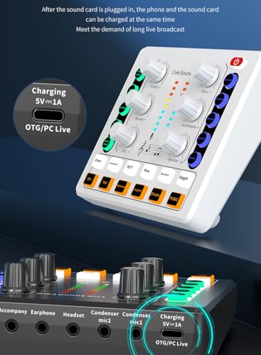 بطاقة صوت ام 8 ميني بلوتوث لايف من هويوب، لوحة مزج صوت محمولة للبث المباشر، ميكروفون بطاقة صوت مع مؤثرات صوتية متعددة، واجهة صوتية مع مولف دي جيه (ابيض)