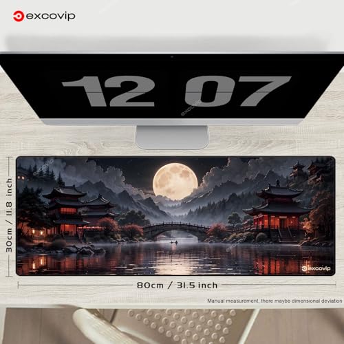 excovip Japanese Mouse Mat Riverside Full Moon Mouse Pad Large Gaming Mousepad XL Keyboard Pad 800x300mm Laptop Computer Mouse Keyboard Mat for Office Black Red 0424
