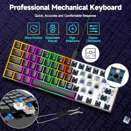 UCHUANG 60% Gaming Keyboard and Mouse Combo, Ultra-Compact 61-Key RGB Backlit Mini Keyboard, Lightweight 7200 DPI Honeycomb Optical Mouse, Wired Gaming Set for PC PS5 Xbox Gamer(Black,Blue Switches)
