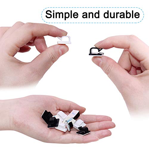 60 PCS A PACK: The package includes 60 pcs cable clips, 30 are balck, 30 are white. Two kinds of color can be used in diffrent places according to your preference. ADHESIVE CLIPS: The cable clips are self-adhesive clips, they can be stuck onto the surface, such as desk, table, wall, metal, glass, floor. Once they are stuck on the surface they will not move away. STICKY & DURABLE: The cable clips are attached strong self-adhesive tapes, the clips will be pulled off and the platic clips are tough, it is enough to organzie the cables. EASY TO INSTALL: The installation of the cable clip is easy. First, dry and clean the surface. Second, pull the paper off and stick the clip on the surface you want. Third, press it for several minutes. WIDE APPLICATION: The cable clips can be applied to various kinds of cable, including data cables, TV cables, USB cables, light cables, network cables and so on.