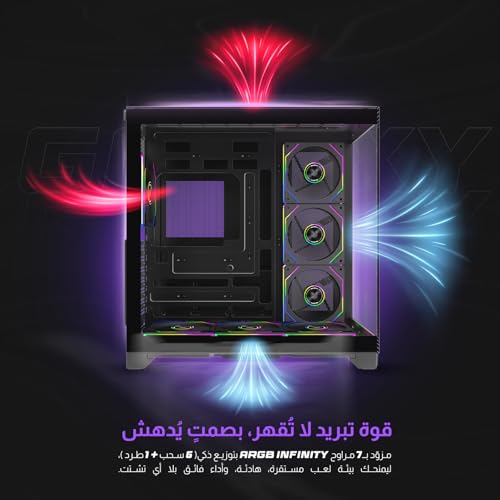 2 YEAR WARRANTY & INSTANT EXCHANGE FROM ALL MAGIESTIE BRANDS IN Saudi Arabia Buy & RELAXED! Because why you choose Majesty, you choose true service and a guarantee that will fit from any branch in your kingdom… Lasting support and confidence with limited limits. LUXURIOUS GAMEWORLD OF GAMING - Clear glass front reveals assembly details with precision and elegance, and geometric design lines give the bag a professional-themed character that reflects your powerful player or designer. Universal Support for Modern Maternity Panels - Compatible with ATX / MATX / ITX panels with back Connected Support for clean and stylish organization within the bag. 7 ARGB Integrated Cooling Propellers with Perfect Distribution - 3 Sides, 3 Bottom, and 1 Backdrop for Effective Air Flow and 360mm Top Water Cooler Support ensures professional and stable cooling even for long play sessions. MOTHERBOARD SMART CONTROL: Support light and fan speed control through motherboard software (such as Aura Sync, Mystic Light or RGB Fusion), for people who prefer full customization through professional software. Wide space for professional collections: Support sturdy screen cards accommodate up to 410mm tall graphics. , Water Cooler up to 360mm, ATX panels, MATX, ITX, - Processor cooler height limit: 158 mm, ensuring compatibility with most overhead curler cooling solutions. No matter your aspiration to assemble, this bag is ready. Modern ports at your hand: HD AUDIO Type-C and USB 3.0 for super fast connection, no complication. Technology is part of your daily comfort.
